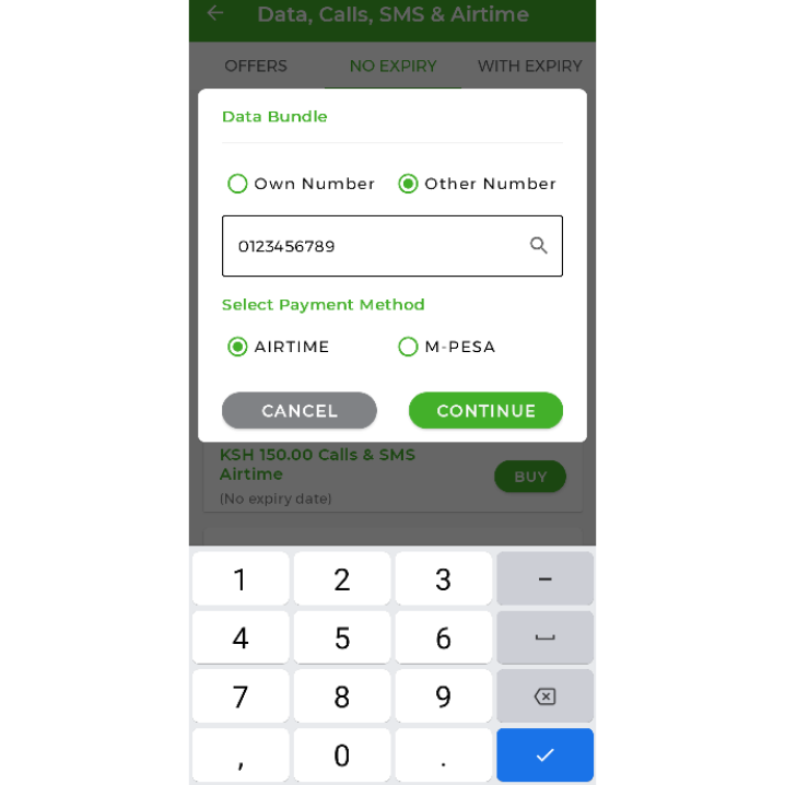 Enter your phone number on the pop up tab. You can either buy with the airtime option or the m-pesa option.