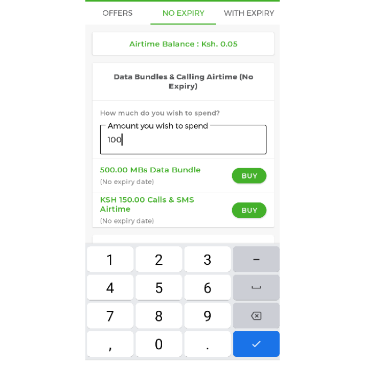 Now navigate to the No expiry tap and input your preferred amount.Select the data bundle offer of your choice and click buy.