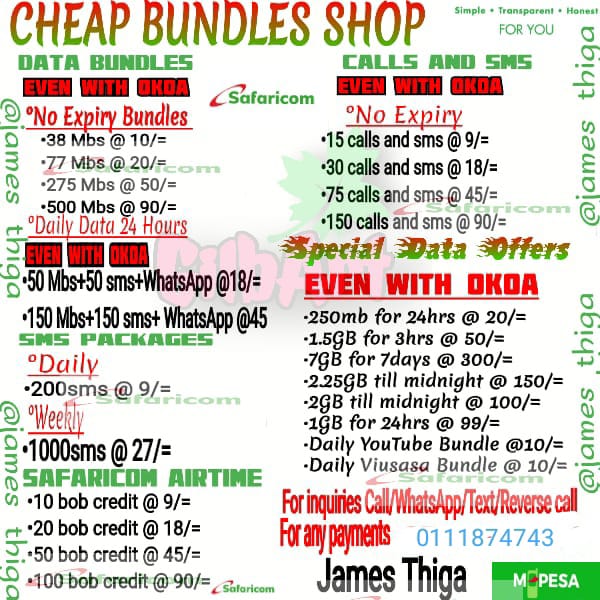 There are various ways to purchase data bundles even if you can’t afford to pay the Okoa jahazi Namely,
